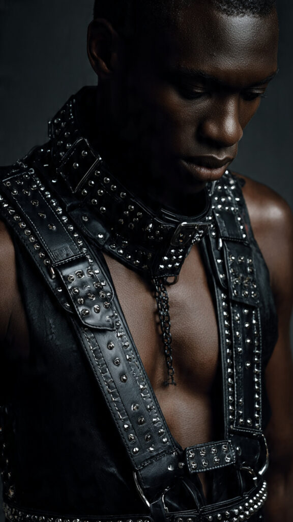 - El Neo-Punk Industrial: Para los perfiles más arriesgados, la incorporación de remaches y metales pesados es innegociable. Diseños como el Arnés Adonis recogen el testigo de la cultura punk británica y lo adaptan a la pista de baile moderna.